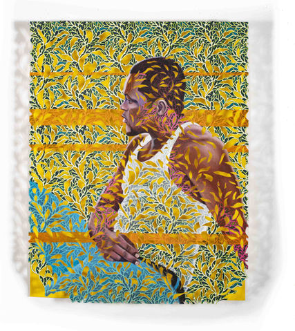 The subjects of my paintings are often friends, family, and colleagues, each carrying their own layered histories of hybridity. I incorporate African print fabric as both a culturally specific and politically charged material, one that simultaneously reflects global exchange. My process of layering, cutting, and erasure creates a visual topography within the work, shaping texture and depth while inviting viewers into an active engagement with the surface and meaning of the painting.